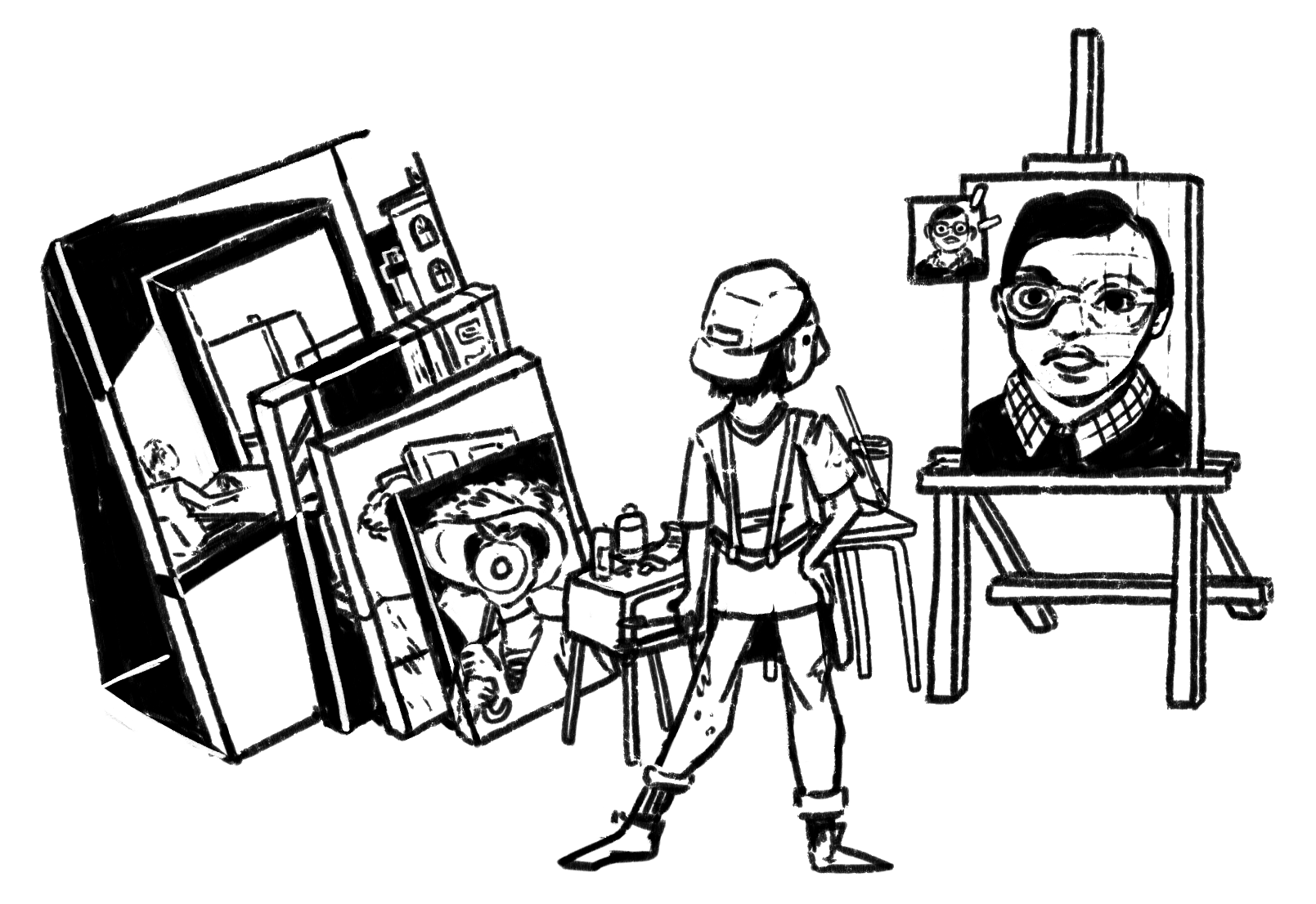Artrepreneur asked me to envision a merchandise design inclusive of all the disciplines they represent on their site. I was inspired by Brooklyn coworking studios where all types of artists come together and create a community. This was also a fun way for me to include all sorts of art history easter eggs.