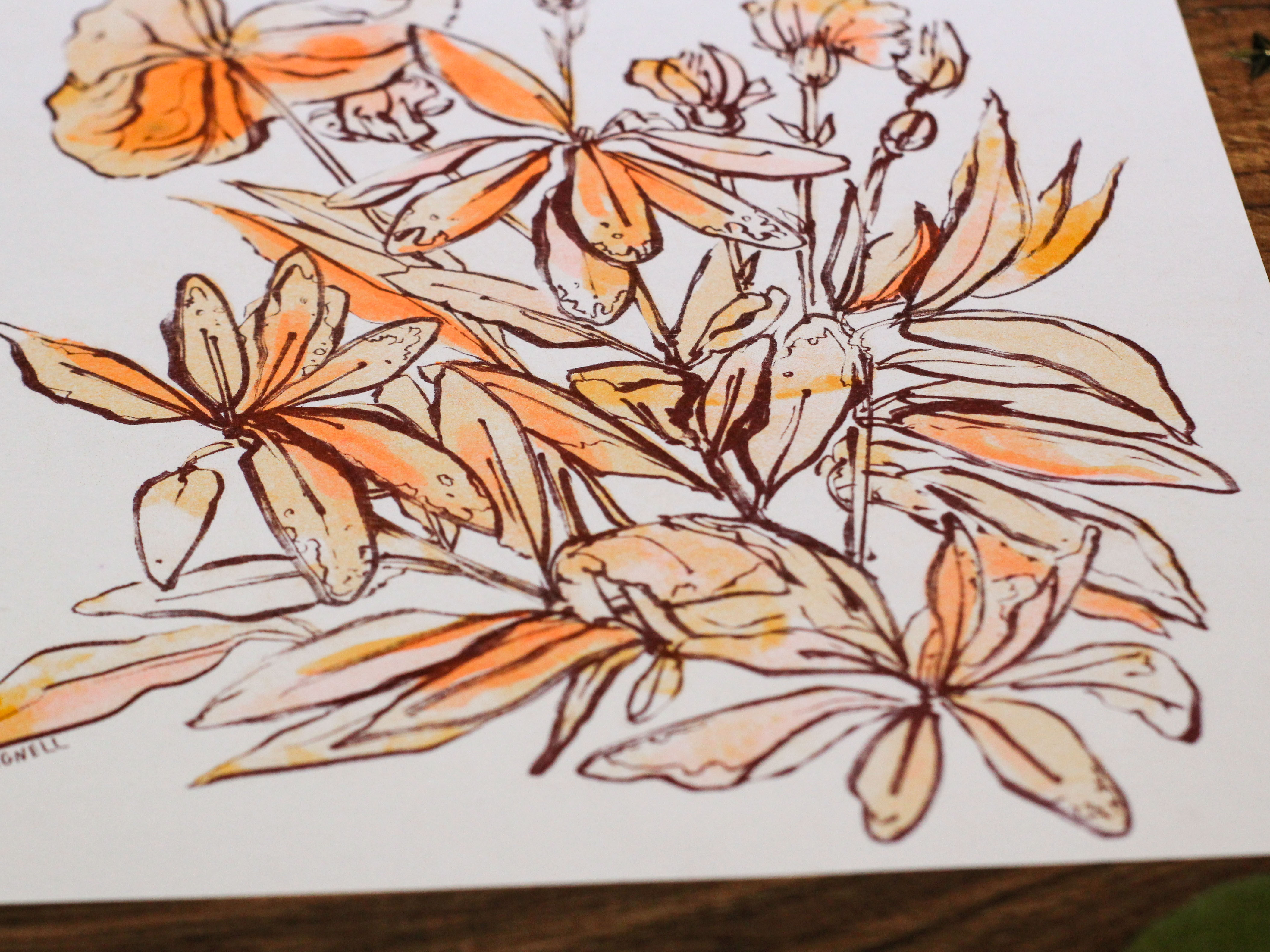 Riso PrintRisograph printed in Fluorescent orange, Sunflower, and Burgundy ink on 65 lb. vellum bristol. 8” x 10”. Like you, all riso prints are unique, so allow for some variation between prints! Printed by hand with love in Brooklyn, NY.